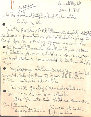 EWP 2.5.A Yr 1938 June 6 Petition 39 Mount Pleasant Colored wants to stay open