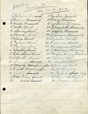 EWP 2-5A Howardsville Transport 001 Handwritten List--Names and what appears to be a place Howardsville. Possibly list of names perhaps about transportation