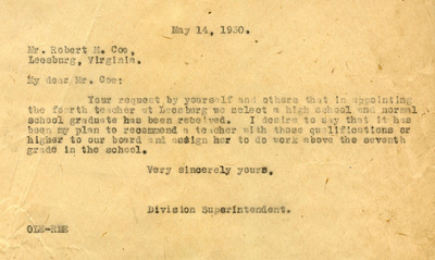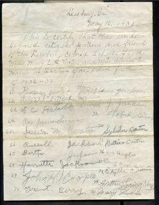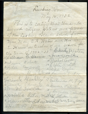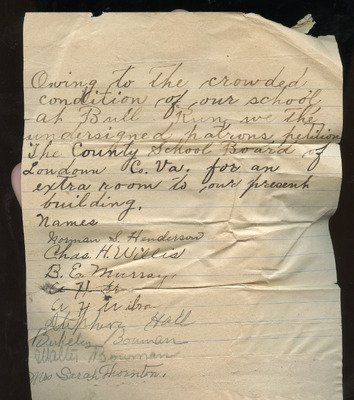 DUPLICATE FILE DUPLICATE FILE (part of EWP 02-5 A Yr 1930s Petition for school bus transportation for colored students to the Loudoun County Training Center) -