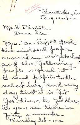 - 2_5_B Yr 1922 Aug Silcott Springs Request to Send Pupils to School