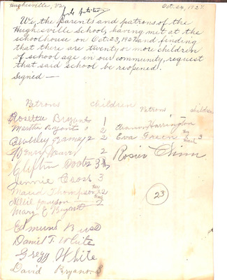EWP 2-5A Yr 1927HughesvilleWantsschoolreopened