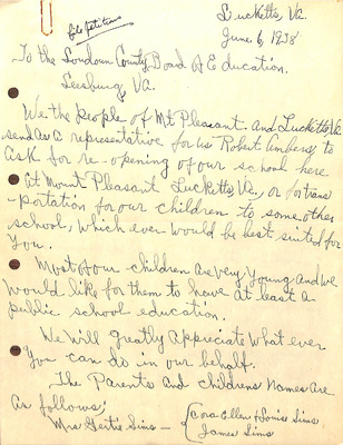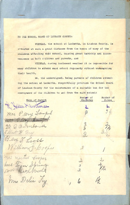 EWP 02-5B Yr Unk Petition for a school bus to Lucketts school Yr Unk, petition for a school bus for children attending Lucketts school