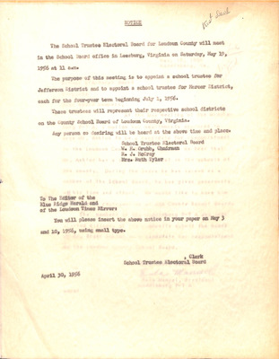 EWP 2-3 Yr 1956 Meeting of May 19, 1956 and Petition of Middleburg PTA