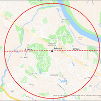 It's estimated that the maximum distance students would have walked to this school is 3 miles one way. The graphic shows the area from which students may have walked to this school.