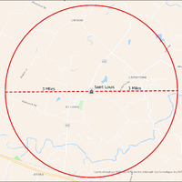 It's estimated that the maximum distance students would have walked to this school is 3 miles one way. The graphic shows the area from which students may have walked to this school.