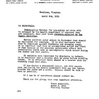 immunization, clinics, vaccination, smallpox, diptheria, whooping cough, poliomyelitis, booster shots, pre-school, health department