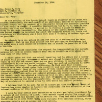 Dec 14, 1944 correspondence from Superintendent O.L. Emerick to attorney James Raby. Emerick addresses new colored teacher for Middleburg, new school in the St Louis area and additional transportation for colored students.