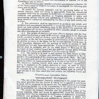 Page 19 of the Gray Commission Report continuation of Appendix III outlines the limited powers of the proposed constitutional convention, emphasizing that it may only amend the Virginia Constitution to allow public funds to be used for private, nonsectarian schools. It states that the convention would have the authority to proclaim and enact these amendments without requiring voter approval, ensuring a streamlined process. The document also details the procedures for conducting the statewide election on whether to call the convention, including ballot formatting, election logistics, and ensuring that voters understand the convention’s narrow scope.