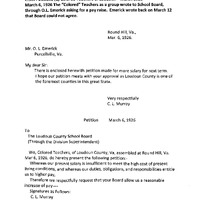 - March, 1926, teachers, Loudoun County, Virginia, pay raise, School Board, African American educators, disparities, equality, segregation, historical document.