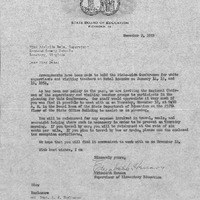 Letter dated November 2, 1953, from Elizabeth Henson, Supervisor of Elementary Education, to Adelaide Dale, Supervisor, Loudoun County Schools, reference the state-wide conference for white supervisors and visiting teachers.