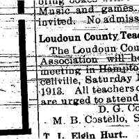 Loudoun Mirror October 13, 1913, publication reference Loudoun Teachers Association meeting at the Hampton’s Hall in Purcellville on Saturday, November 15, 1913.