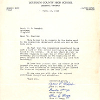 Letter, April, 1955, Loudoun County, High School, Leesburg, Virginia, concerns, textbooks, commercial department, educators, approved list