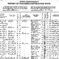 December, 1934, Division Superintendent, contracted teachers, school system, names, schools, teaching address, grade, subjects taught, status, married, single, widowed, unknown, high school, elementary, math, science, history, English, educational system.