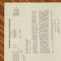 letter, May 9, 1942, Emmett J. Scott, Secretary, Southern Education Foundation, William T. Smith, Douglass High School, Loudoun County, Virginia, dedication, African Americans, education, segregation, funding, initiatives