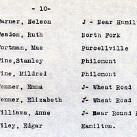 Hamilton, Purcellville, Philomont, Round Hill, Virginia, 1950s, Warner, Nelson, Weadon, Ruth, Wortman, Wine, Wenner, Williams, Wiley