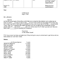 August 6, 1936, request, school bus, Mt. Gilead, Mrs. Gilbert Jewell, August 13, 1936, Superintendent O.L. Emerick, refusal