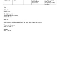 White Petition Aldie 1927 05 21 Letter re Application from Tyler W