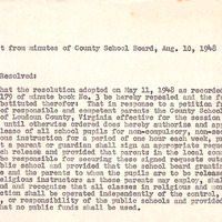 County School Board, Loudoun County, Virginia, 1948, resolution, non-compulsory, non-sectarian, religious instruction, parental consent, parental involvement, education, religious freedom