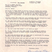 letter, League of Women Voters, Loudoun County, Virginia, D.N. Myers, Chairman, School Board, referendum, Constitutional Convention, integration, segregated schools, funding