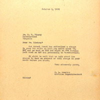 October 8, 1952 correspondence from Superintendent O.L. Emerick to school bus driver Mr. W. F. Lindsey authorizing a route change for privately owned bus # 12. October 9, 1951 correspondence from Superintendent O.L. Emerick to school bus driver Alvin Fleming authorizing a route change for county school bus (# 10). May 4, 1953 correspondence from clerk Ruth Emerick to Mr. Robert McClain requesting he submit his bills for March and April (1953).