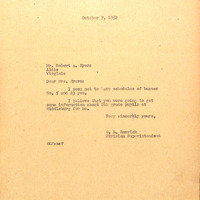 EWP 03 Yr 1952 Superintendent O.L. Emerick Request of Mr. Robert A. Myers for Aldie (White) Elementary school bus schedules.
