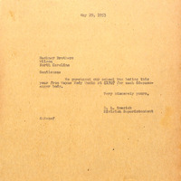 May 29, 1953 correspondence from Superintendent O.L. Emerick to Hackney Brothers. Purpose: let Hackney Brothers know LCPS has purchased their bus bodies from Wayne Works. Likely in response to a proposal for bus bodies from Hackney Brothers.