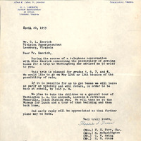 April 30, 1953 correspondence from Carver teachers Furr, Washington, Ewing and Jones to Superintencdent O.L. Emerick requesting school bus transportation for a tour of Washington D.C. Proposed dates for trip were May 12 or 13, 1953.