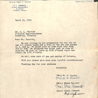EWP 03 March 24, 1953 correspondence from teachers Daniel, Barrett and Johnson to Superintendent O.L. Emerick requesting school bus transportation for zoo trip