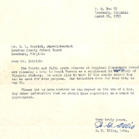 EWP 03 March 26, 1953 correspondence from Principal Ellis to Superintendent O.L. Emerick requesting school bus transportation for Douglass Elementary trip to Mount Vernon