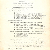 The text outlines the schedule and topics covered in the ZI Program for Loudoun County Teacher's Institute at Leesburg High School in 1919. The program began with opening exercises, roll call, and addresses by various speakers, including Division Superintendent and Dr. Brydon on education and health. The agenda included discussions on educational measurements, instincts in education, teaching methods for elementary and high school teachers, and organizational aspects such as the County Teachers' Association. The second day continued with sessions on phonics, teaching strategies, school governance, student attendance, and community engagement. The program also featured discussions on the role of teachers in the community, school fairs, and ways to improve student enrollment and attendance. The event concluded with reports, resolutions, and open discussions on various educational issues, emphasizing collaboration and professional development among teachers in the county.