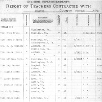 October, 1911, Division Superintendent, teachers, Loudoun County, Miss Emma Fries, Miss Mary B Nicol, Broad Run, Sterling VA, Miss Grace Brooks, Miss Lillian Moran, Clarks Gap, Ashburn VA, Miss May Barron, Miss Ellen Hill, Waxpool, Aldie, Leesburg, educational system, early 20th century.