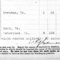 report, November 11, 1909, schools, Jefferson, Waterford, Virginia, teachers, Mrs. M. E. Stuart, Herndon, Mr. R. H. Snodgrass, instructions, district, white, colored, eight months, efficiency, conservation, education, segregation, racial dynamics, 20th century