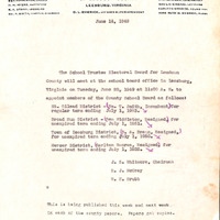 June, 1949, Loudoun County, Virginia, School Board, Ben Middleton, Nan Lin Kincaid, Karlton Monroe, appointment, resignations, School Trustee Electoral Board, Leesburg, districts, leadership, education, transition, incumbents, Wm. T. Smith, transparency, community.
