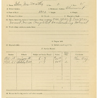 Teacher, Miss Dorothy F Iden, Loudoun County, Virginia, educational background, teaching experience, salary, college, Harribonburg Normal, elementary education, subjects, grades, salary history, musical ability, athletic coaching, career insight