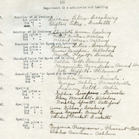The text provides a glimpse into an academic competition, likely from the early to mid-20th century, focusing on arithmetic and spelling skills. The winners of various categories, such as problem-solving and standard tests for speed and accuracy, are listed, with individuals like Dillian Litus, Elizabeth Hume-Tomatury, and Bruce Kemper being awarded prizes. The competition also included spelling challenges, with participants like Frances Foelth and Dorothy Spratt showcasing their skills. The inclusion of various locations such as Leesburg, Purcellville, and Waterford indicates that this academic event likely drew participants from different towns or regions.