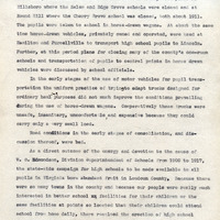 This late 1930s survey report on school consolidation and transportation in Loudoun County, Virginia, examines the closure of one- and two-room schools, the shift to larger institutions, and the financial and logistical impacts of these changes. Conducted during the Great Depression, it highlights rising transportation costs, community resistance, and debates over high school education, particularly concerns that schools focused too much on college prep while neglecting practical life skills. The report also acknowledges racial disparities, noting Black communities’ demands for improved high school facilities and transportation in Willisville and Middleburg, Virginia.