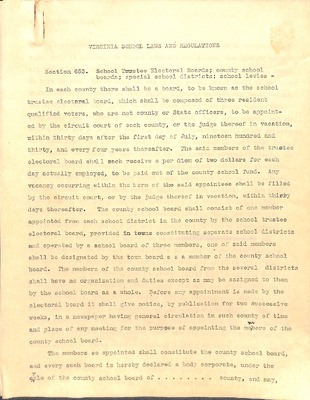 EWP 2-5B Yr 1926 Law of Lincoln Purcellville School Case "The Law of Lincoln - Purcellville School Case Appeals," provides insight into the legal framework surrounding school board actions and appeals during the Lincoln-Purcellville. School location dispute. It references specific legal codes such as Code 666, Acts of 1924, and Code Section 673, highlighting the importance of adherence to Virginia State Board of Education regulations and procedures in selecting and approving school sites. The mention of Acts of 1922 authorizing condemnation for site selection emphasizes the complexities and legalities involved in establishing school locations. Sections on donations, closing schools, and electoral board membership reveal the various legal considerations that impacted education policies and practices in the area during this time.