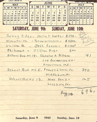 EWP 12-4 Yr 1945 Handwritten Notes on School Bus/School Bus Driver Costs 1945 Handwritten notes presumed to be costs of private and county bus/bus drivers. Purpose unknown.