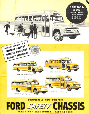 EWP 12-9 Yr 1953 Ford Safety Chassis Brochure 1953 Ford school bus safety chassis brochure. Four all new chassis, includes specifications, compatible school bus bodies, pictures.
