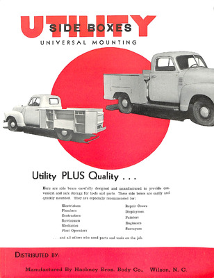 EWP 12-9 Yr 1953 Truck Utility Side Boxes by Hackney Hackney Truck Utility Side Boxes brochure, showing dimensions and mounting locations for Model SB-2.