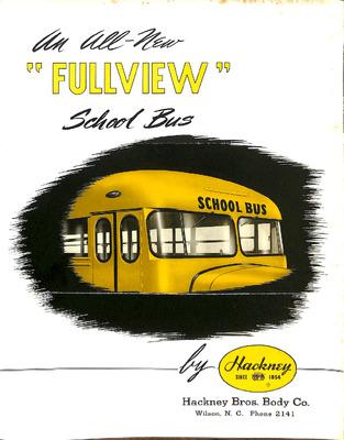EWP 12-9 Yr 1954 Full View Hackney Bus Advertisement for Hackney 'Fullview' model School Bus. Includes dimensions, pictures, features, 'Fullview' is related to wind shield.